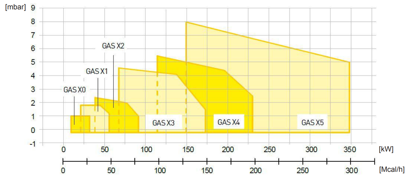 **** Untuk pembakar: GAS X0CE – GAS X1CE – GAS X2CE – GAS X3CE – GAS X4CE dengan penutup baja (F), tambahkan berat 3 kg.