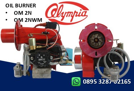 Burner dengan Category Industrial Burner dengan Brand Olympia Kogyo Co., Ltd Jepang, Model OM-2N adalah burner dengan kapasitas 170.000 kcal/jam menggunakn bahan bakar solar dengan Fuel Consumption 10-20 L/hr. Power Supply AC 220V, Single Phase menggunakan Motor: 250W sistem Operasi Control Method On-Off (Single Stage) atau satu tahap pembakaran, dan untuk OM-2NWM sistem Operasi Control Method Light-Low (Two Stage) atau dua tahap pembakaran.