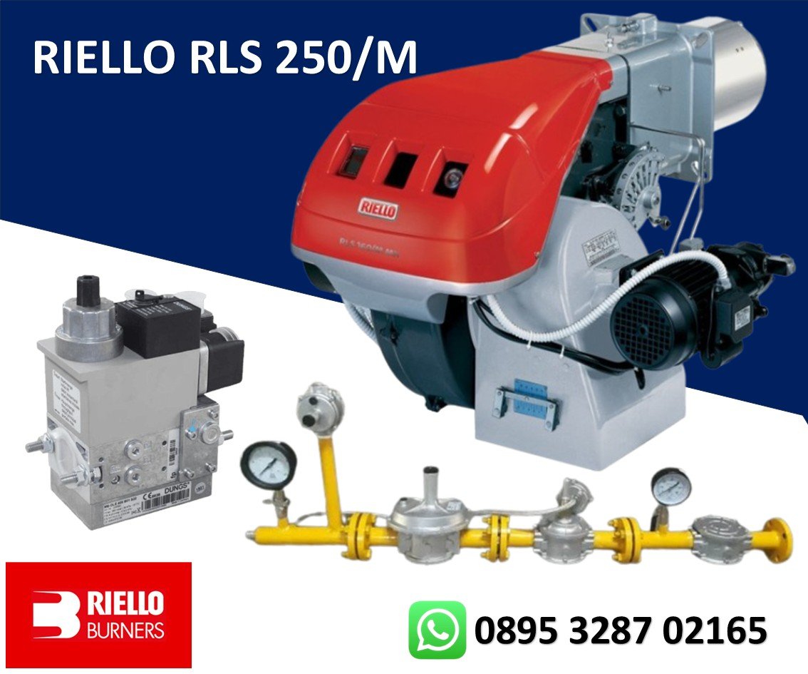 Burner RIELLO RLS 250/M MZ adalah Burner Dua bahan bakar yaitu gas dan solar mencakup rentang daya 1100 – 2150 kW, dan telah dirancang untuk digunakan pada boiler air panas atau super panas, generator udara panas atau uap, serta boiler minyak diatermik. Operasinya “dua tahap” di sisi minyak dan “modulasi” di sisi gas dengan pemasangan regulator logika PID dan probe masing-masing.