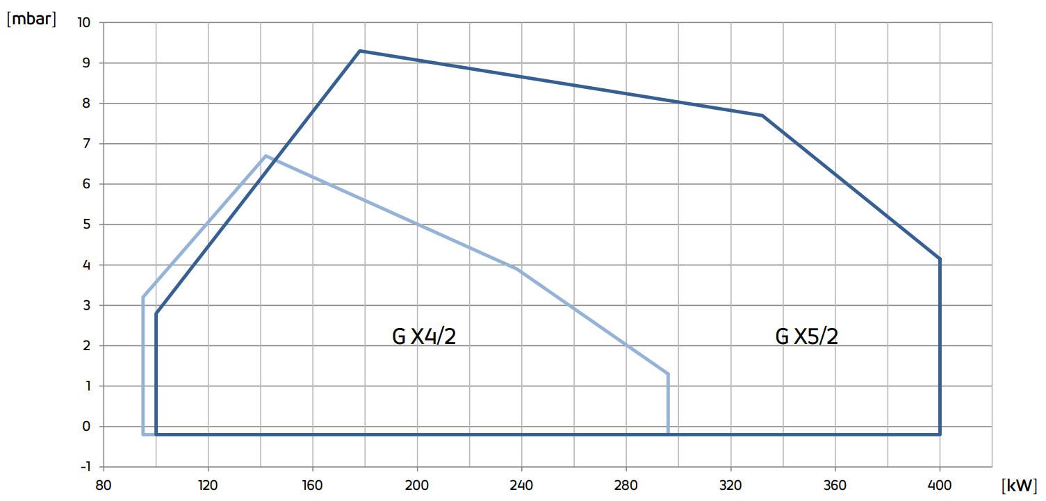 *** Untuk pembakar dengan penutup baja (F), harap tambahkan 1 kg ke beratnya.DIAGRAM JANGKAUAN OPERASI G X4/2 – G X5/2
